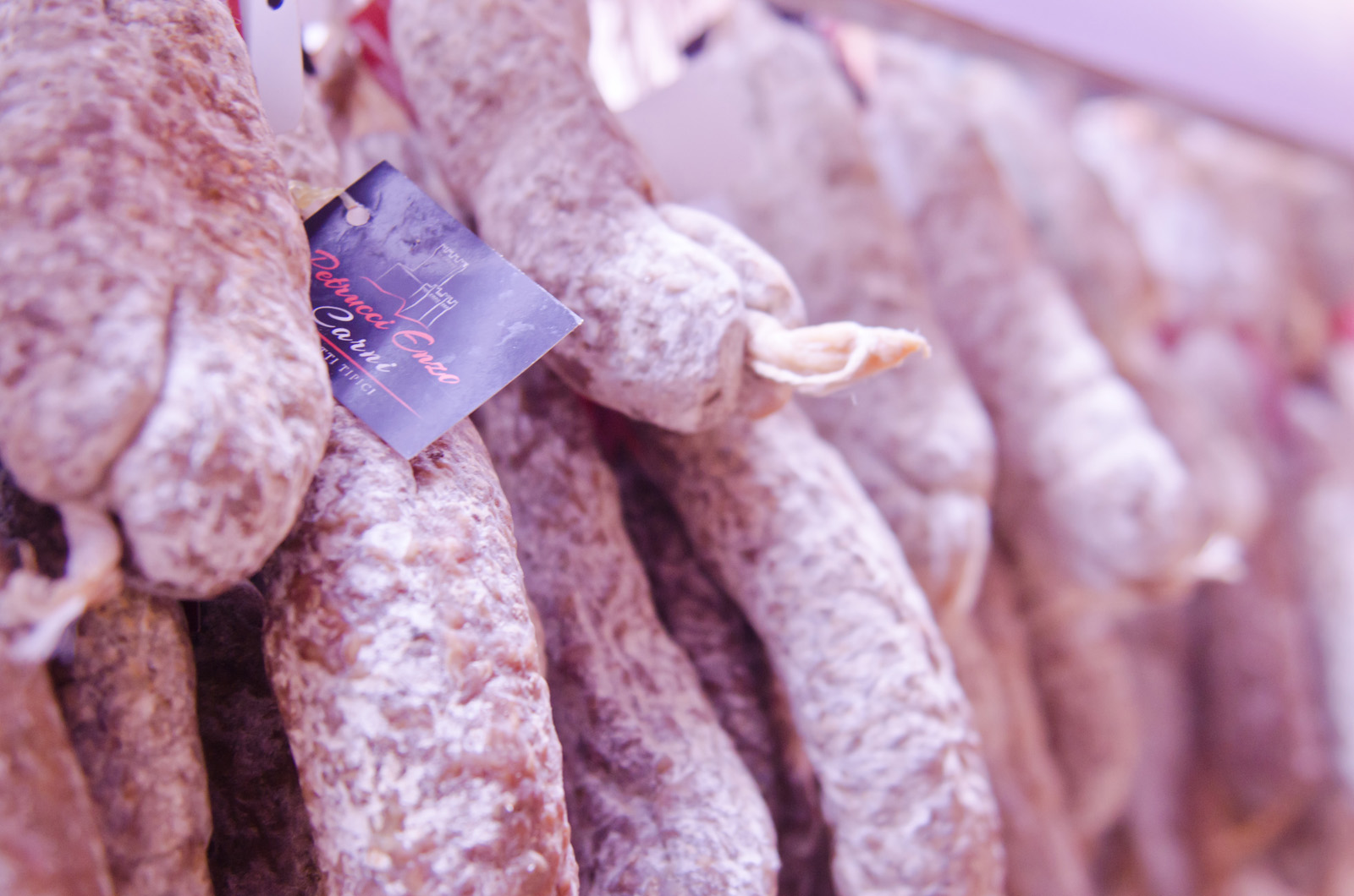 Lavorare la carne è il nostro mestiere da sempre ma la nostra carne non esce da un ignoto camion frigo soffocata da un anonimo involucro di plastica. La nostra carne muggisce a pochi metri da qui, grufola tra le ghiande cadute dalla quercia, bela nel prato di sopra…